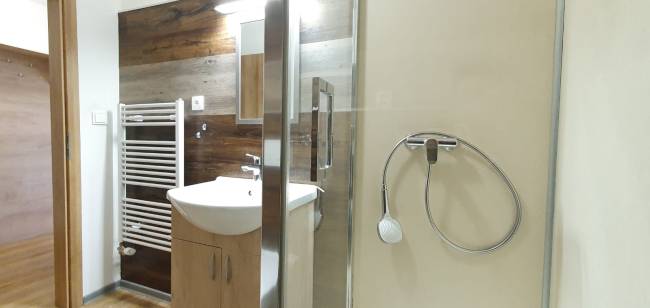 • murovaná kúpeľňa so sprchovým kútom a WC,