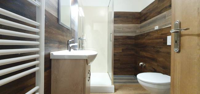 • murovaná kúpeľňa so sprchovým kútom a WC,