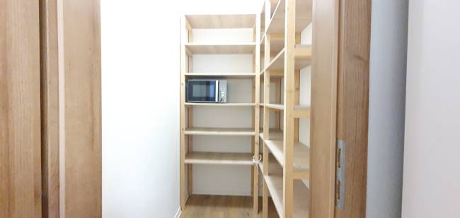 • kuchynská linka so spotrebičmi: elektrická rúra, varná doska, mikrovlnná rúra, rýchlovarná kanvica, automatická práčka, chladnička s mrazničkou,