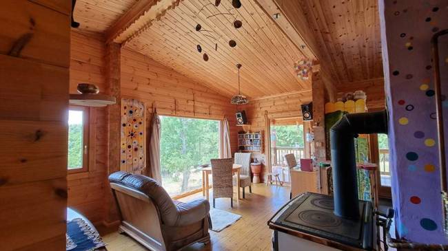 Ponúkame na predaj jedinečný celoročne obývateľný fínsky drevený zrub so saunou, pivnicou, skleníkom, jazierkami, domčekom na náradie, pecou na chlieb, záhradou na pestovanie plodín a ovocnými stromami. Nehnuteľnosť sa nachádza na slnečnom terasovitom pozemku o výmere 17 444 m², iba 6 km od mesta Krupina. Prístup je cez oblasť Červená hora, posledné 2 km vedú lesnou cestou – zaručené ticho, súkromie a nočná obloha posiata hviezdami.